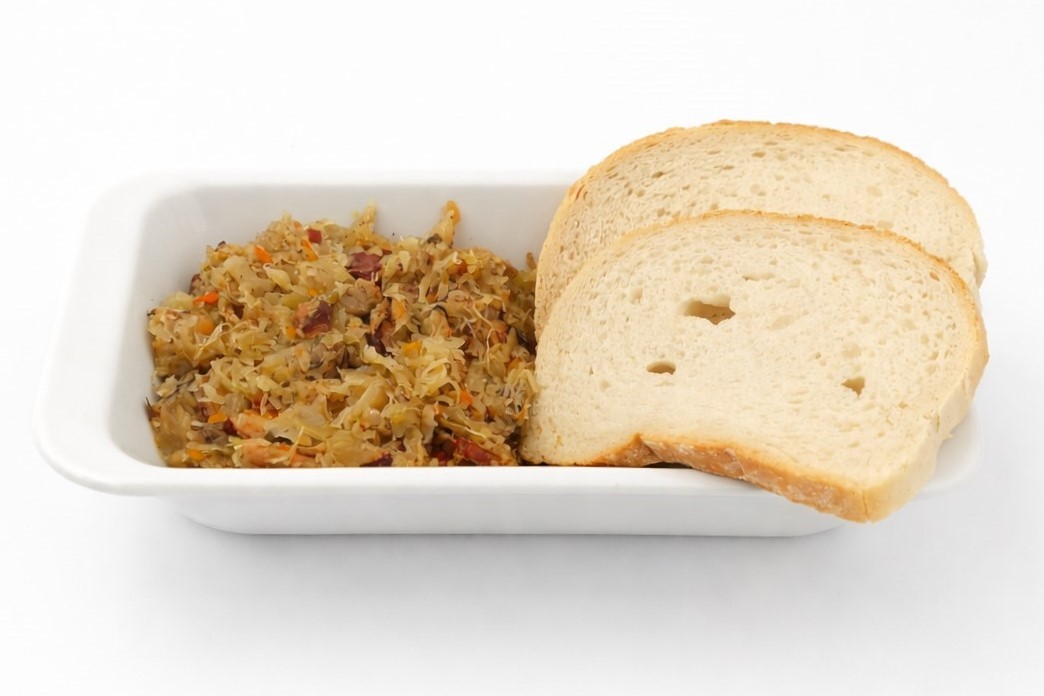 Bigos tradycyjny z kiełbasą, karkówką i pieczywem
