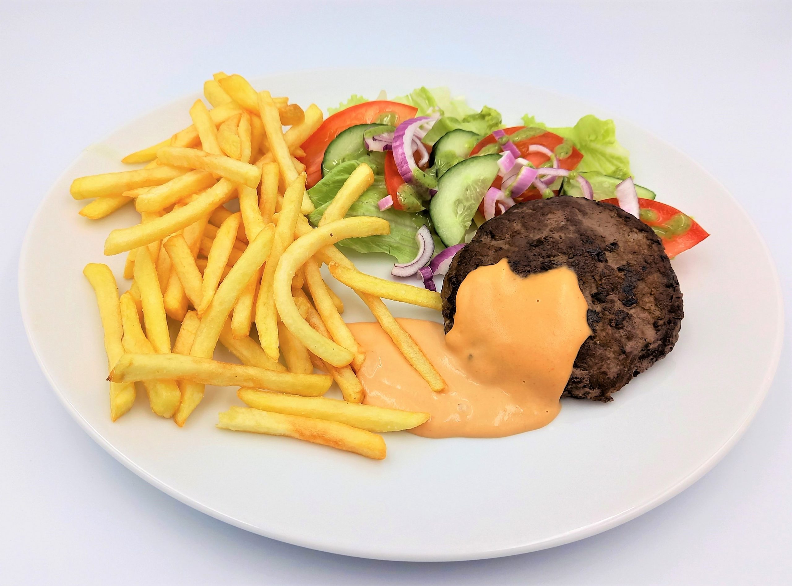 ilość Burger na frytk. z miksem sałat i sosem amerykań