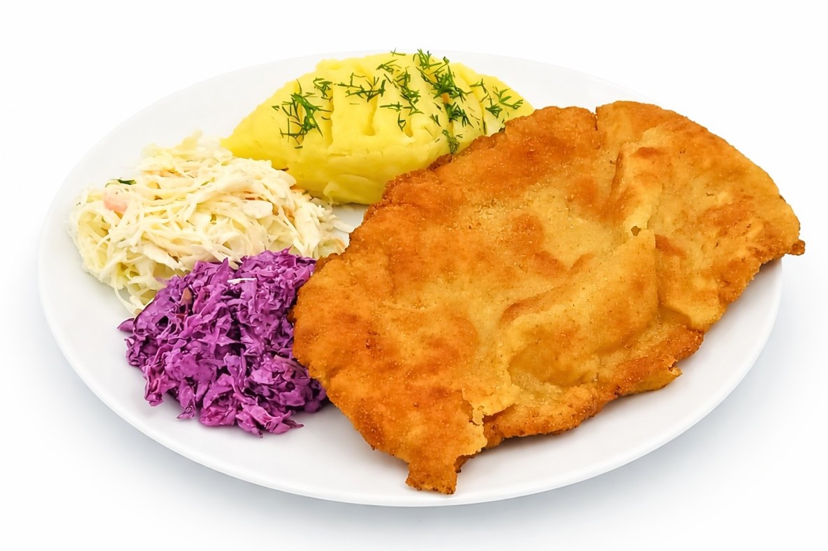Sznycel z ziemniakami i surówkami